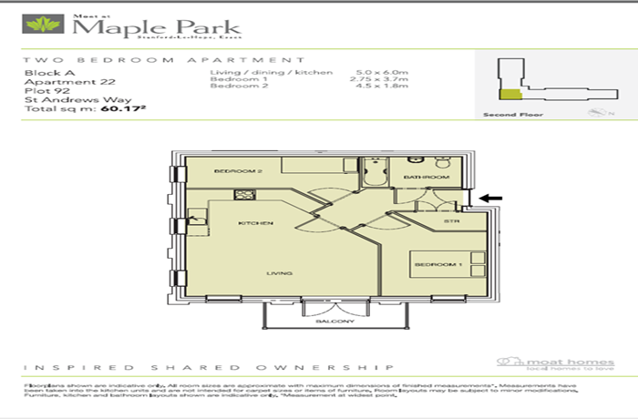 Moat is pleased to bring to the market this well presented two-bedroom second (top) floor apartment built as part of the Maple Park development.The property is approximately 60sqm and comprises of an entrance hallway, open plan living / kitchen / dining area, two bedrooms, bathroom, private balcony. The property also benefits from off-street parking. Stanford Le Hope railway station is approximately one mile away with links to London Fenchurch Street, Liverpool Street, Basildon and Southend. The apartment is within close proximity to Lakeside shopping centre which offers a good selection of high street names. There are several primary and secondary schools in the local area including Stanford Le Hope Primary and St Clere’s secondary. The property is conveniently situated for access onto the A13.